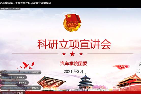 为鼓励与引导我校学生积极参与课外学术研究、科技制作和发明,3月20日,汽车学院利用腾讯会议APP在线上举办第二十批大学生科研课题立项申报动员大会。本次宣讲会由2019级辅导员张杜主讲,100余名学生参加。