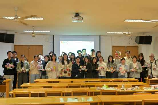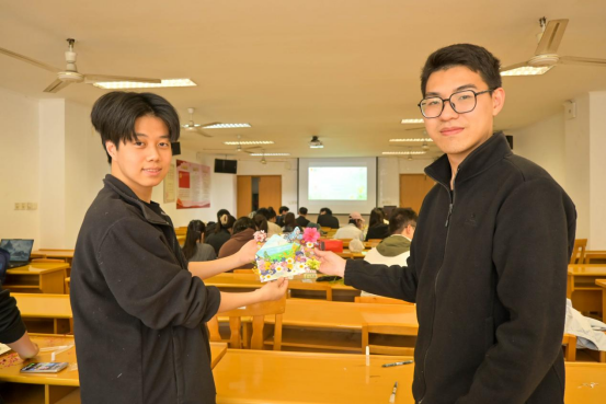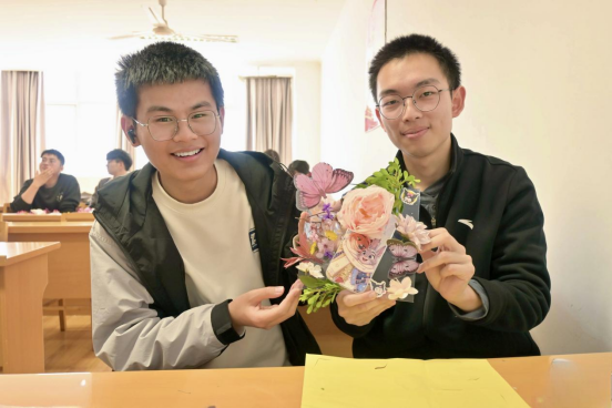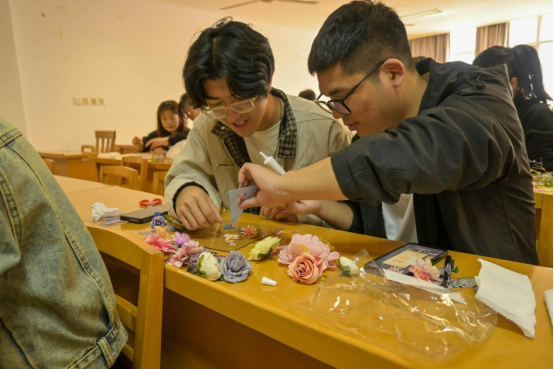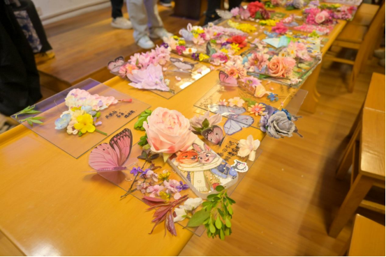 作品完成后,各参赛队伍依次上台,阐述创作思路、设计理念与深层内涵,分享中饱含对春日的热爱、对生活的热忱与成长的思考。现场设置创意交流区,同学们相互观摩、交流心得,传递温暖与灵感。